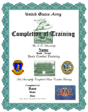 Authorized for completion of the Army US Army Basic Training Completion course, school or academy.)