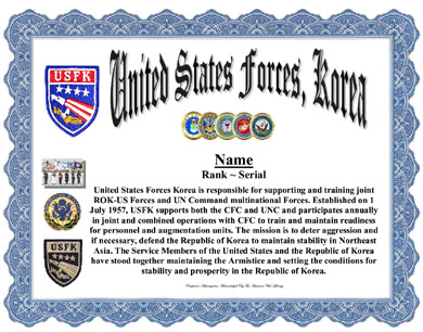 Authorized to all military and civilian personnel in service with or under command of the United States Forces, Korea. (Unit awards apply to members who served during the unit's award period. See Meritorious, Valorous, Presidential, Superior, Outstanding and other unit award categories.)