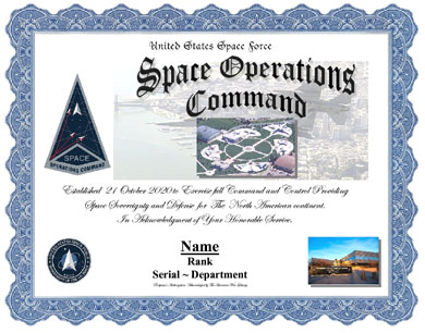 Email: Space Operations Command Service Display Recognition InquiryTelephone: 1-562-422-4100 (Pacific Time Zone)