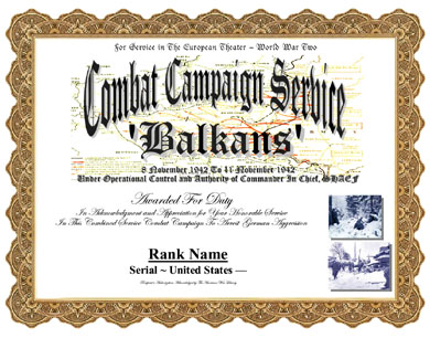Email: Balkans Combat Campaign, WW2 Display Recognition InquiryTelephone: 1-562-422-4100 (Pacific Time Zone)
