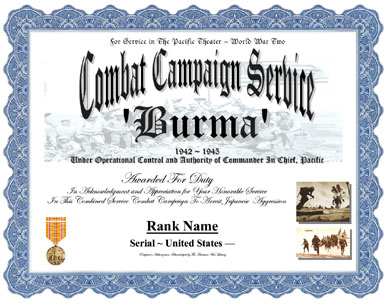 Email: Burma Combat Campaign, WW2 Display Recognition InquiryTelephone: 1-562-422-4100 (Pacific Time Zone)